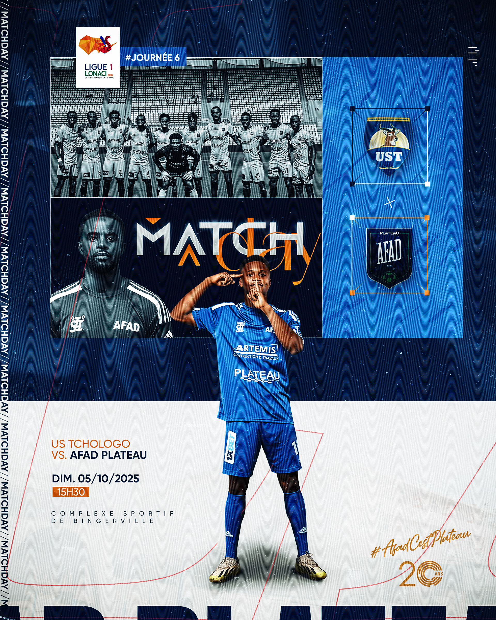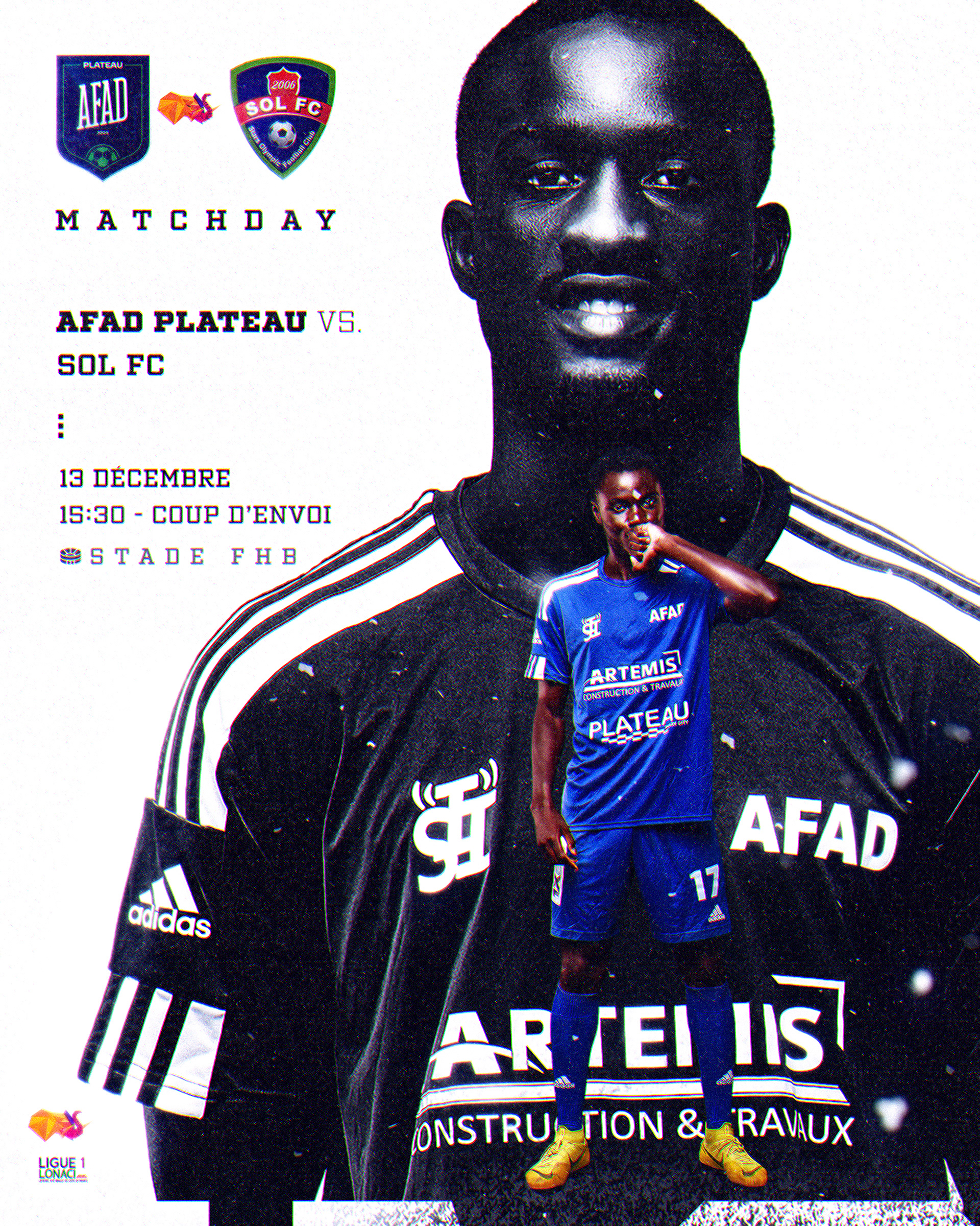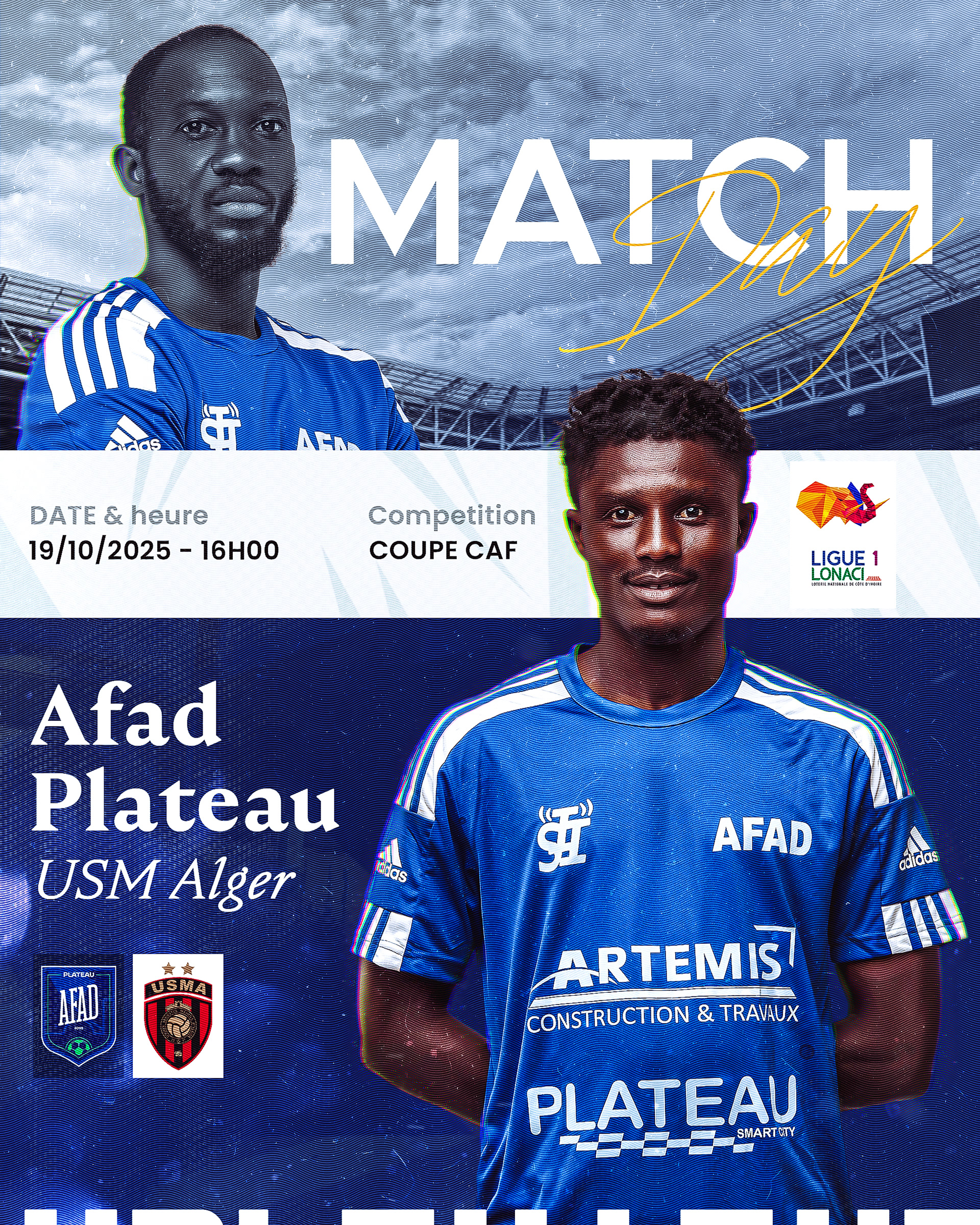 Création de visuels sportifs pour la communication digitale officielle de AFAD Plateau, club de Ligue 1 ivoirienne.