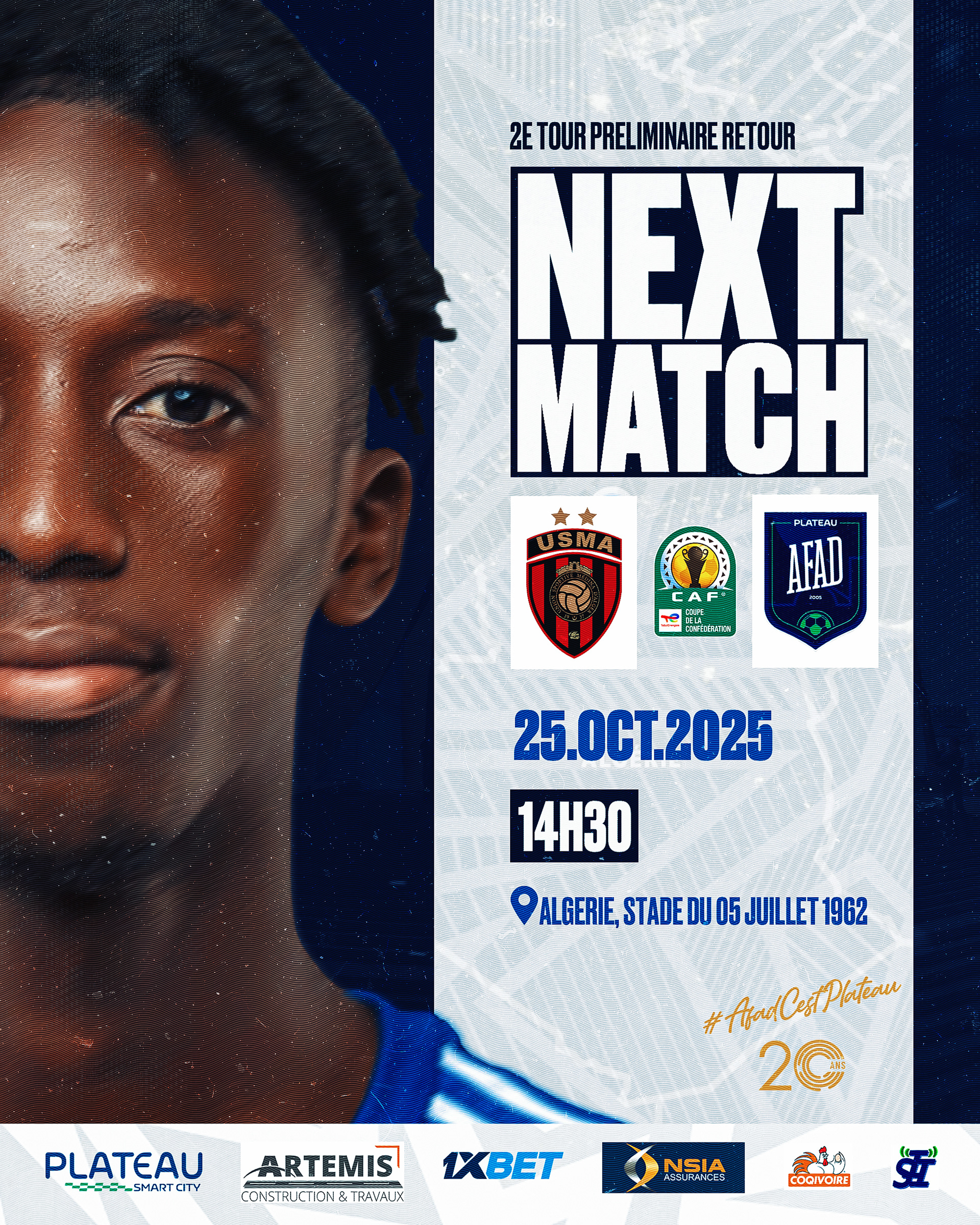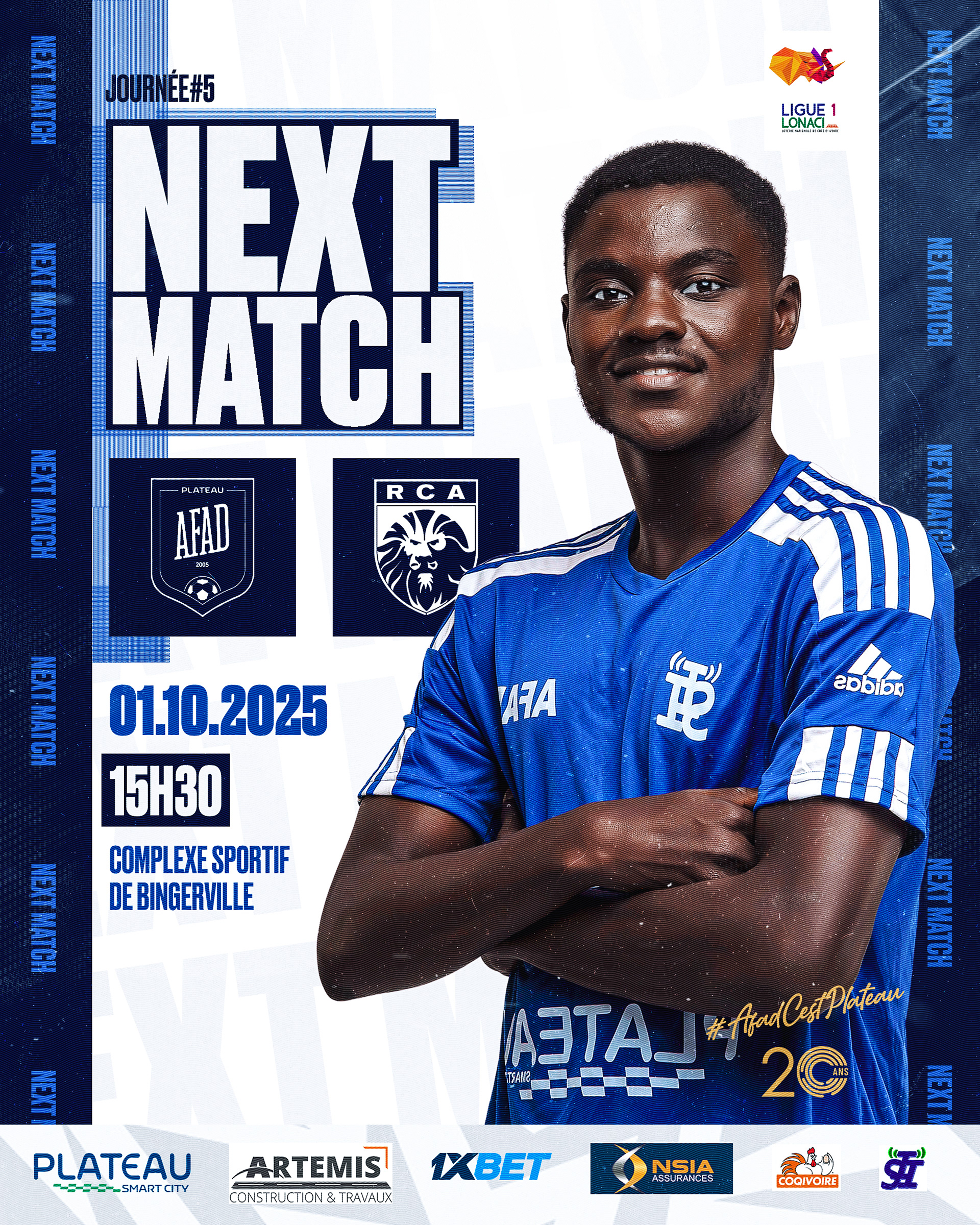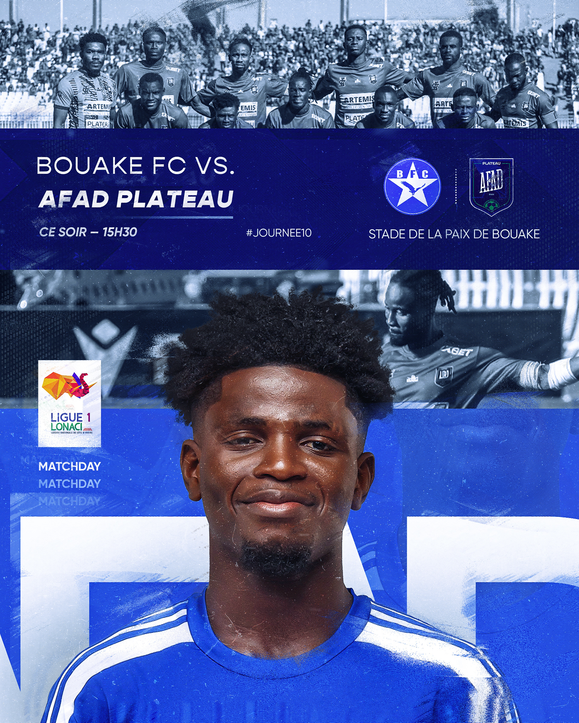 Création de visuels sportifs pour la communication digitale officielle de AFAD Plateau, club de Ligue 1 ivoirienne.